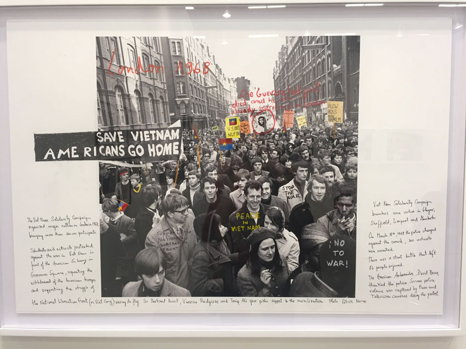 - De la serie 1968 el fuego de las ideas black and white archival photograph intervened with handwritten texts by Marcelo Brodsky