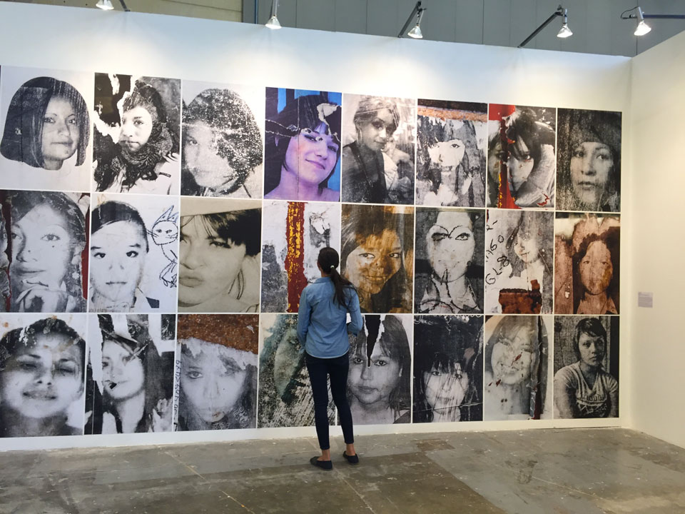 Another of the interesting works was that of Teresa Margolles displayed in the Peter Kilchmann Gallery. Through photography, installations and jewelry works, she captures some of the problems caused by drug cartels in several Mexican cities. Threads used in corpses after an autopsy, pieces of glass extracted from inert bodies after a violent death, and images of missing young woman, become the harrowing radiography of a horror story that is still being written.