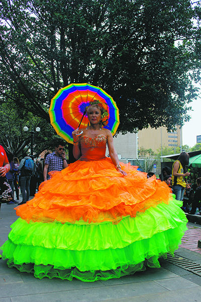 “We are here to support the rights of LGBT people in Colombia. Every year you can find a lot of beautifully decorated floats and people always enjoy themselves.”