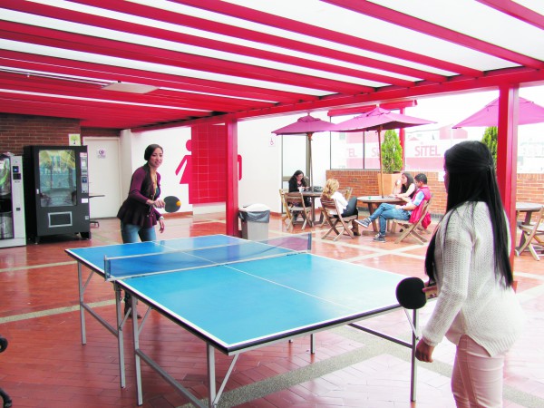 - Staff enjoy ping pong in the courtyard